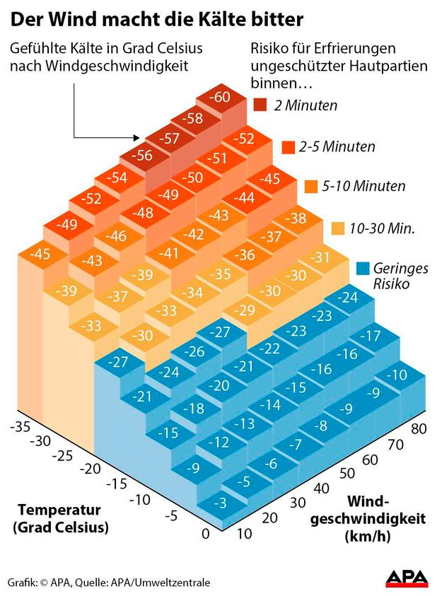 Weiterhin eisige Temperaturen bis zu minus 20 Grad prognostizierte die Zentralanstalt für Meteorologie und Geodynamik (ZAMG) für die letzte Februarwoche. Der Mittwoch soll der kälteste Tag werden, pünktlich zum meteorologischen Frühlingsbeginn am 1. März setzt sich die Sonne dann zumindest im Osten stärker durch.